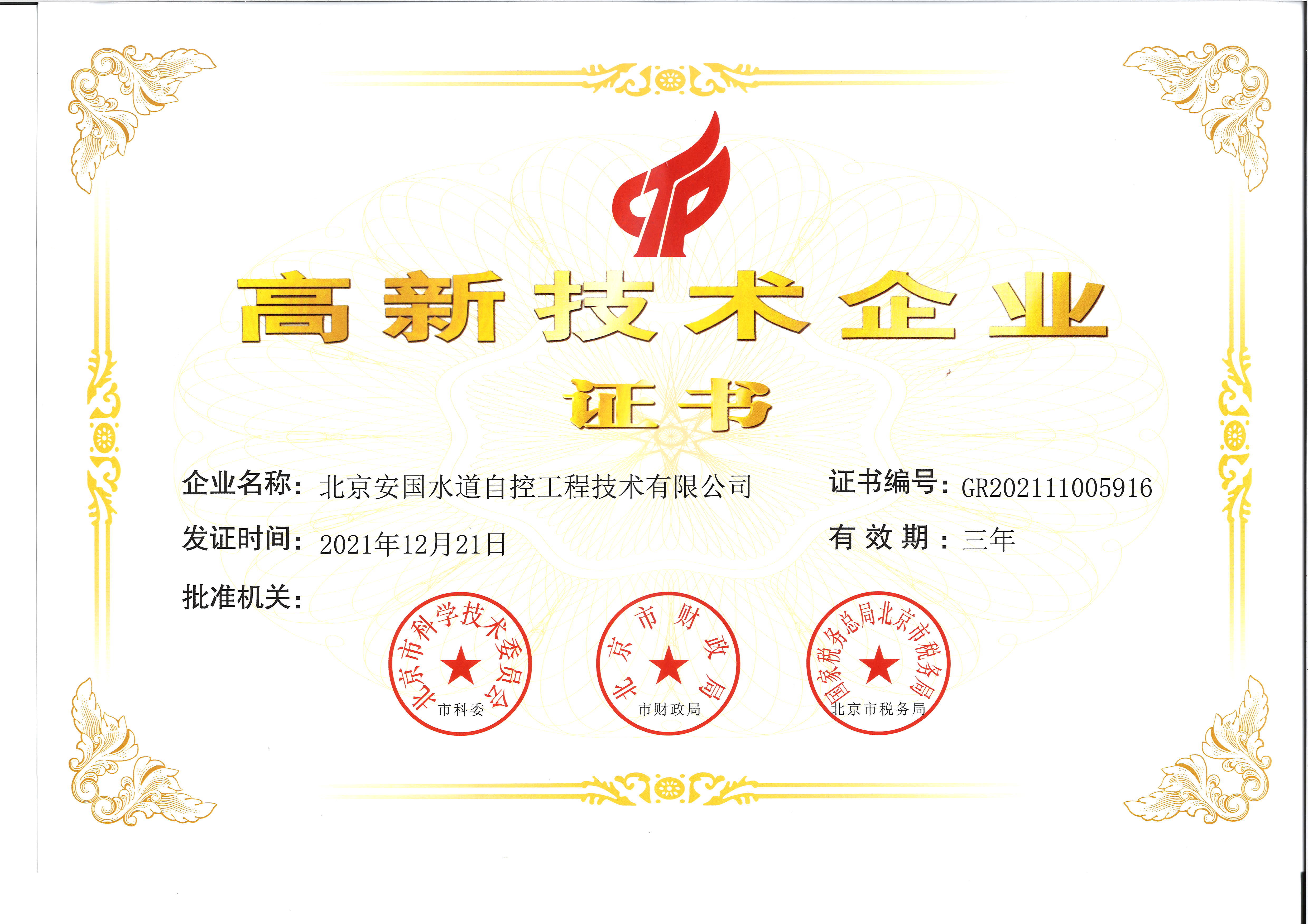 北京安國(guó)水道自控工程技術(shù)有限公司2015年入駐中國(guó)給水排水品牌委員會(huì)